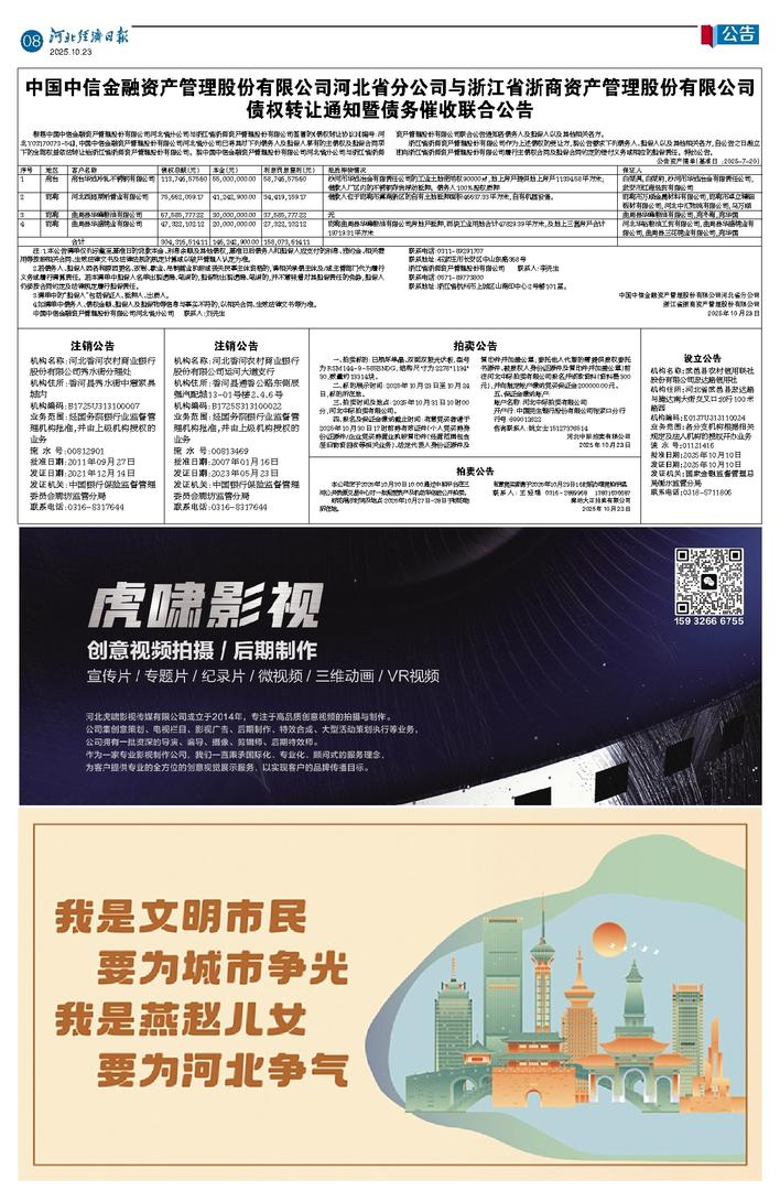 中国中信金融资产管理股份有限公司河北省分公司与浙江省浙商资产管理股份有限公司 债权转让通知暨债务催收联合公告