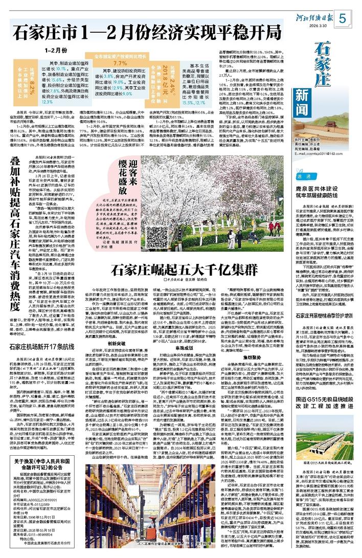 石家庄市1—2月份经济实现平稳开局