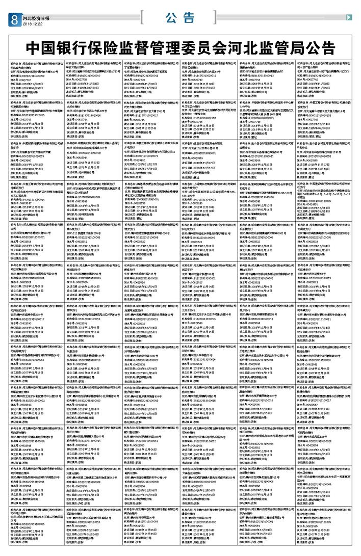 中国银行保险监督管理委员会河北监管局公告