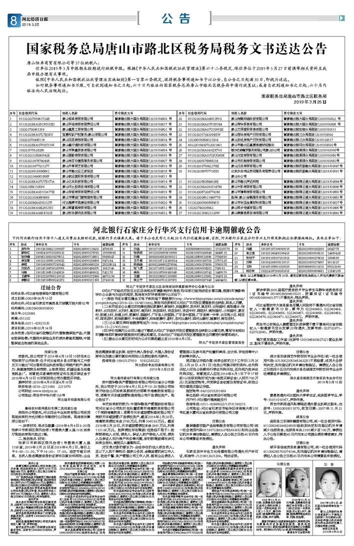 河北银行石家庄分行华兴支行信用卡逾期催收公告