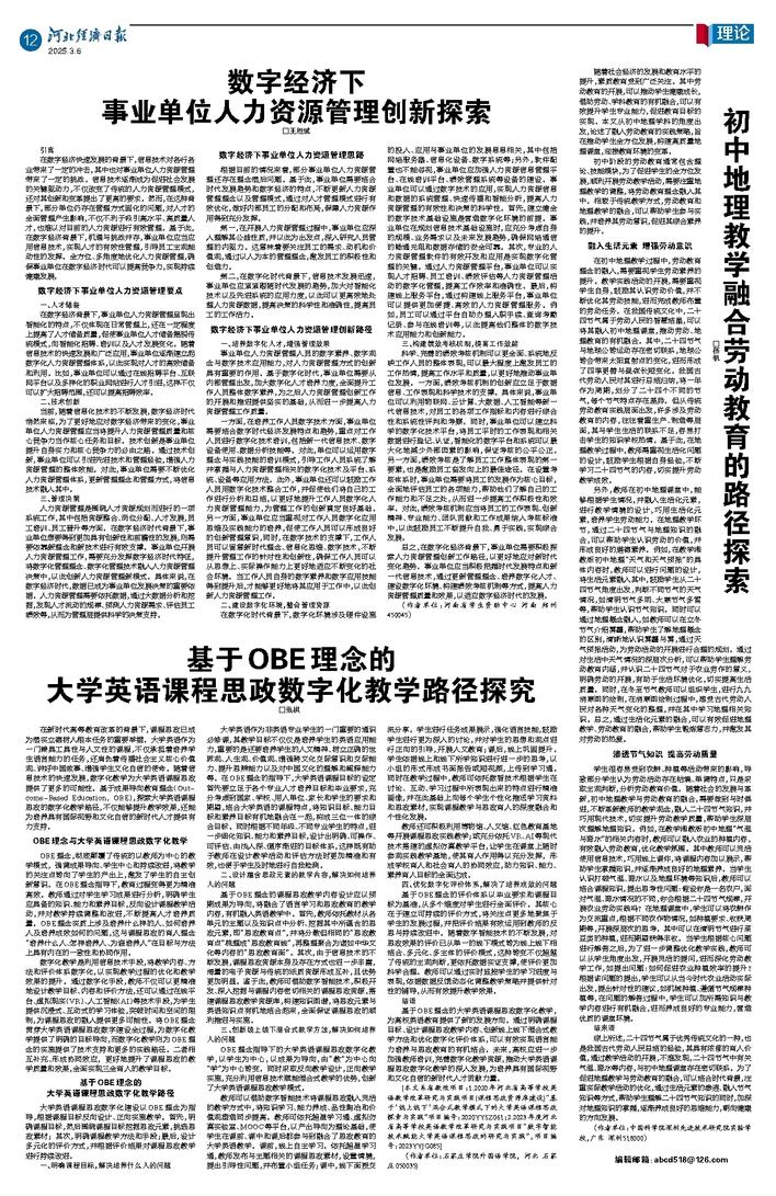 基于OBE理念的 大学英语课程思政数字化教学路径探究