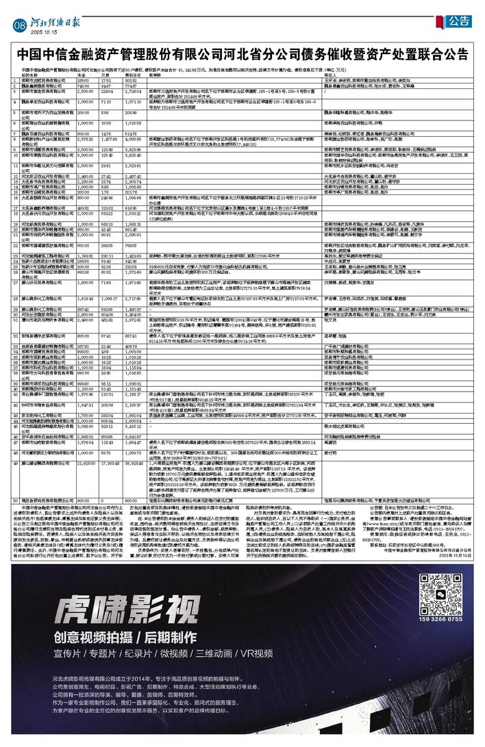中国中信金融资产管理股份有限公司河北省分公司债务催收暨资产处置联合公告