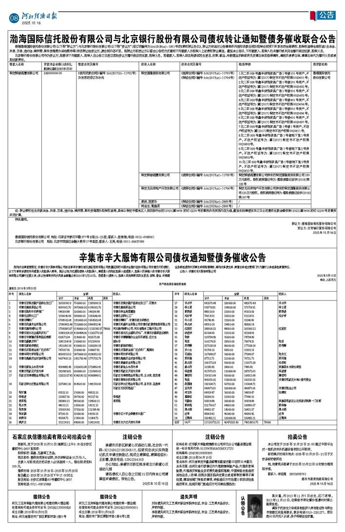 渤海国际信托股份有限公司与北京银行股份有限公司债权转让通知暨债务催收联合公告