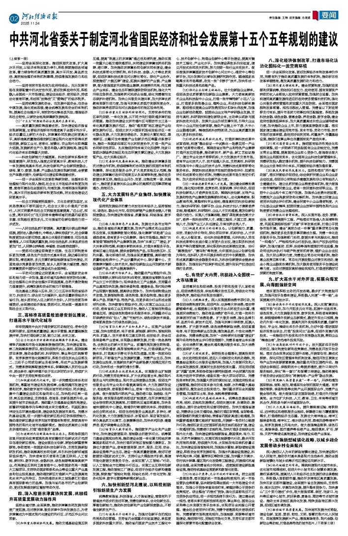 关于《中共河北省委关于制定河北省国民经济和社会发展第十五个五年规划的建议》的说明