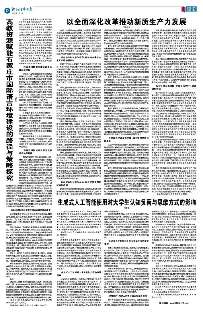 生成式人工智能使用对大学生认知负荷与思维方式的影响