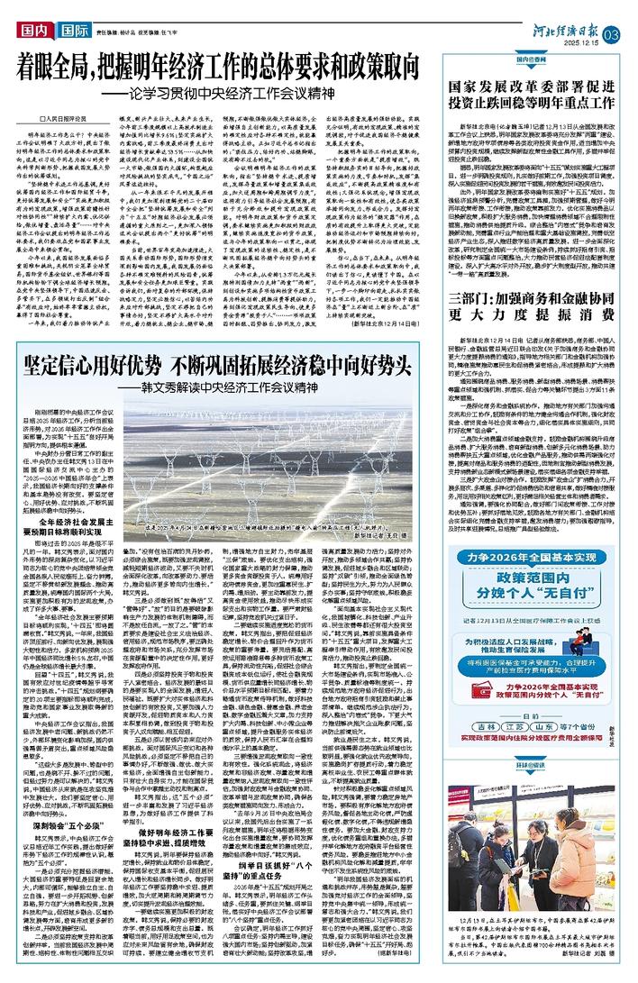 着眼全局,把握明年经济工作的总体要求和政策取向