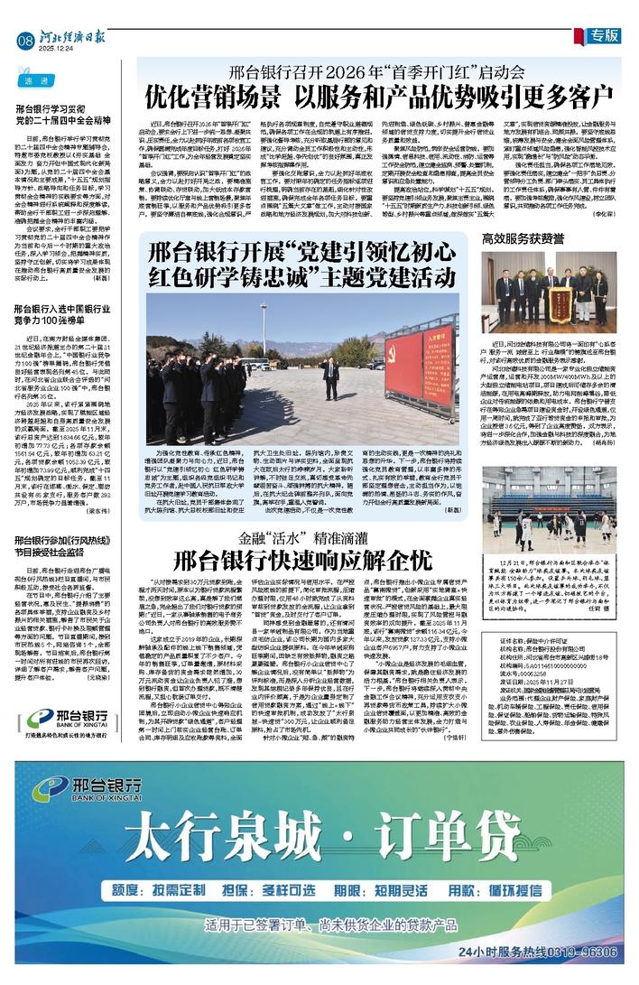 邢台银行学习贯彻 党的二十届四中全会精神
