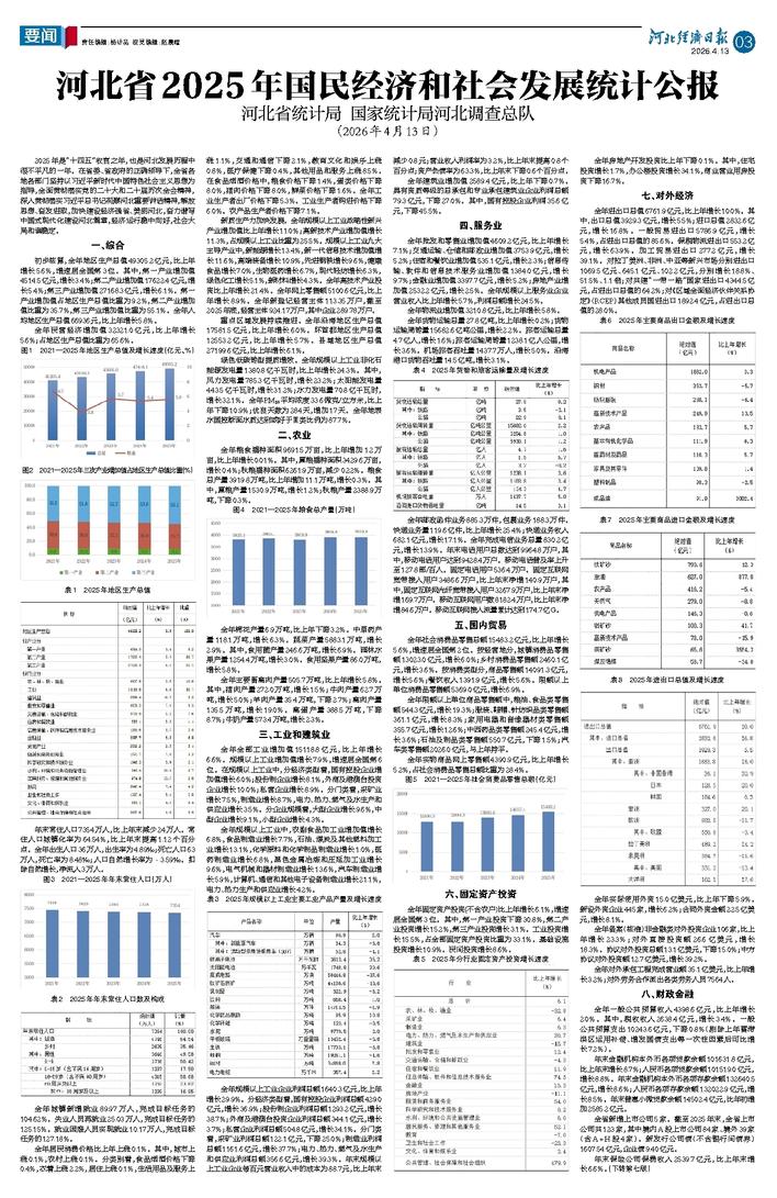 河北省2025年国民经济和社会发展统计公报