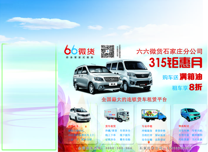 随着市场的不断变化,六六顺集团顺应市场发展需求,倾力打造的全新新能源货车租赁平台也在3·15当天升级上线。在原有货车租赁、冷链物流、微车销售的基础上,加入新能源车电动车产品,更好的为客户解决路权、油耗、价格等问题。实现亲民化、简单化、方便化、智能化的服务宗旨。凸显集团在同城配送、货车租赁、微车销售领域的强大优势。