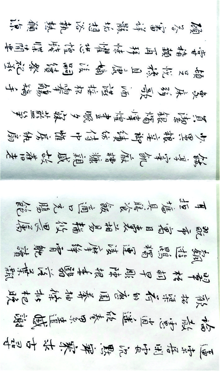 每一个书画家都从临摹入手。就书法本体而言,要求严格掌握书法的笔法、结构、章法。写字无“百日之功”是实用写字,而写字成为书法家就是一辈子的事。学书法过程平整——险绝——平整,螺旋式上升。这是书法家从低到高的进步公式,是书法家一生的进步过程,最后达到气韵生动,无欲于佳乃佳之境地。