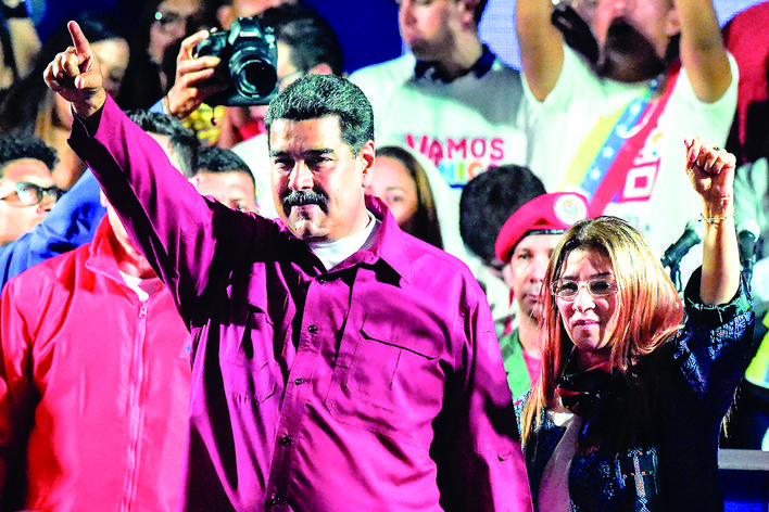 5月20日,委内瑞拉总统马杜罗(左一)出席在加拉加斯举行的集会。委内瑞拉国家选举委员会20日宣布,现任总统马杜罗赢得本次总统选举。新华社/法新