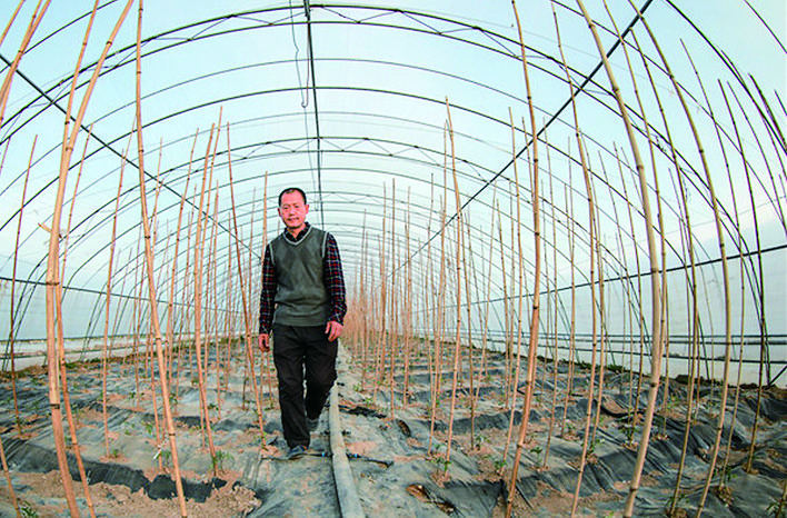 正在巡视西红柿大棚的孙国亮。记者 刘潇 摄