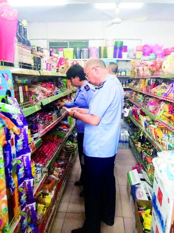 近日,承德市鹰手营子矿区市场监督管理局围绕“四个重点”对辖区内校园及其周边开展了食品安全专项整治行动。此次行动共出动执法车辆3台次、执法人员9人次,检查经营户20户次。下一步,他们将加大检查力度,从源头上把好关,切实保障辖区师生舌尖上的安全。图为执法人员在检查食品质量。 于家琳 摄