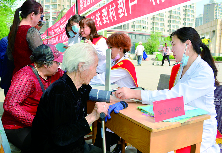 近日,平泉市组织卫计部门抽调医护专家深入到城区、乡镇,开展义诊活动,切实解决群众“医病难”问题。图为医护人员正在城区为群众义诊服务。 李平文 李毅然 摄