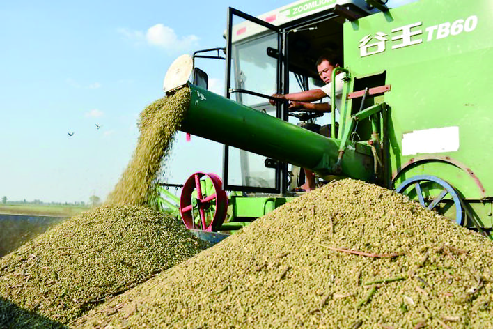近日,位于南和县郝桥镇俊清家庭农场里的1600余亩绿豆喜获丰收。南和县围绕促农增收调结构,着力培育农业合作社、农业产业化龙头企业、家庭农场等新型经营主体,引导农户进行特色种植,发展订单农业。目前,该县共种植绿豆、小豆、谷子等杂粮1万余亩,带动了当地农民增收致富。 黄涛 张赫赫 摄