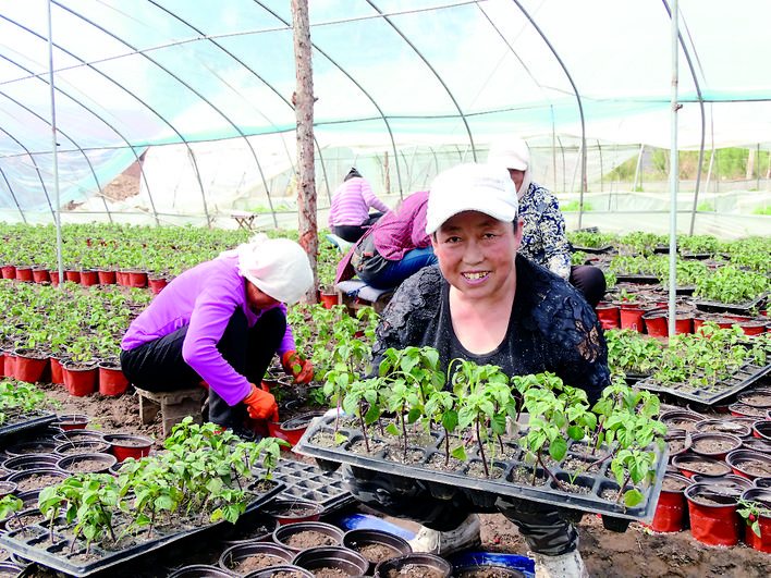 近年来,围场龙头山镇把发展花卉产业作为农业供给侧结构性改革、带动农民致富增收和推动地方经济发展的支柱产业,大力推动花卉产业转型升级。该镇顺鑫果蔬合作社种植的薰衣草、三色堇、芙蓉串、串红等观赏植物150万盘,产出的花卉用于旅游沿线景观布置。图为该镇合作社工人正在管理花卉。王东岭 张云娇 摄
