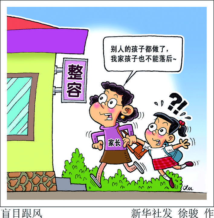 ——盲目跟风整容。成都市第三人民医院医学美容科主任叶飞轮说,整容项目最好在18岁之后做,年纪太小,孩子发育尚未完成,除了一些由于先天畸形确实需要修复的,不建议过早做相关整容项目。