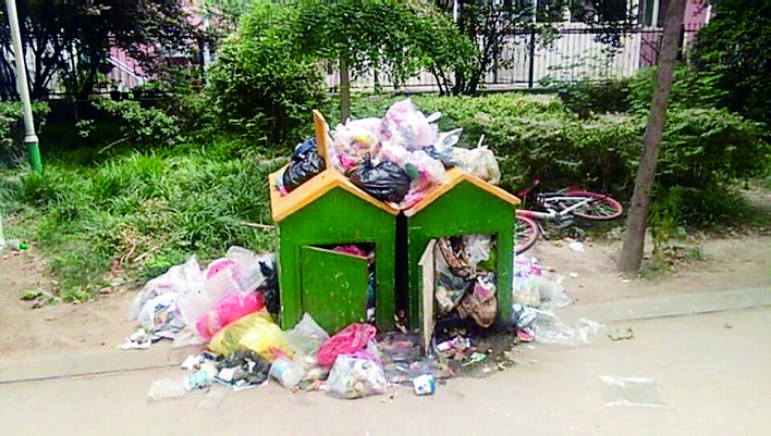石家庄市碧水蓝湾小区内垃圾清理不及时。业主供图