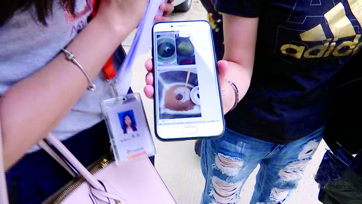 石家庄市碧水蓝湾小区业主向记者展示小区自来水水污染的照片。 武新杰 摄