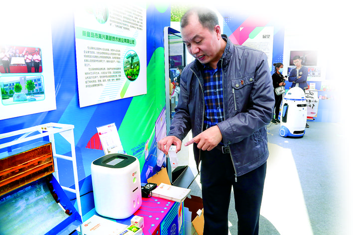 “双创”示范基地建设成果展引来众多围观者。记者 王亚 摄
