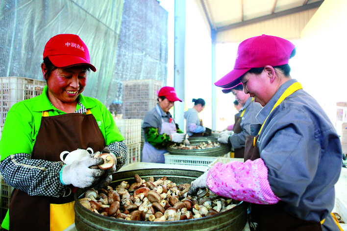 平泉中润食用菌园区的菇农正在挑选蘑菇。 张建伟 摄