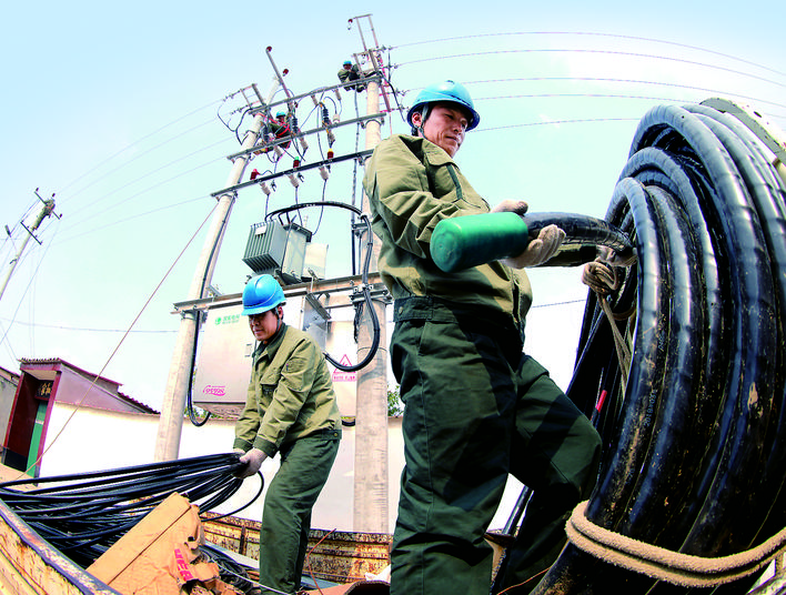 10月18日,国网巨鹿县供电公司施工人员在该县柴尚庄村进行煤改电电网工程建设。2018年,国网河北省电力公司投资1026.71万元,为巨鹿县1805户电代煤用户新建改造电网。巨鹿县把冬季清洁取暖作为重大民生工程来抓,积极稳妥推进煤改电、煤改气等清洁能源利用工程,确保群众温暖过冬。 记者 任光阳 摄