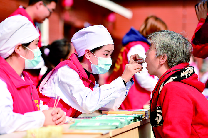 近日,桥西区委宣传部在桥西区志愿服务广场开展了“关爱老年人”主题志愿服务活动。活动现场,来自桥西口腔医院“爱心牙医志愿服务队”的志愿者们,为老年人免费检查口腔,讲解口腔护理知识,演示正确的刷牙方法,通过倡导科学健康的生活方式,增强老年人的自我保健意识。张晓峰 摄