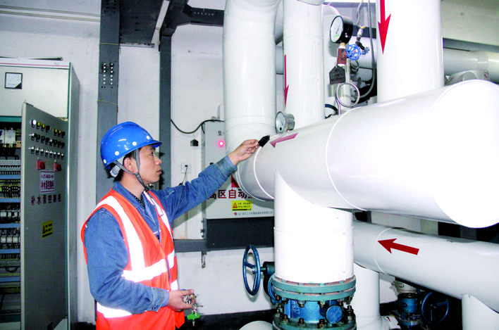 石家庄10日凌晨全市供热达标试运行。图为石家庄华电供电集团员工在查看供暖设备。 记者 王亚 摄
