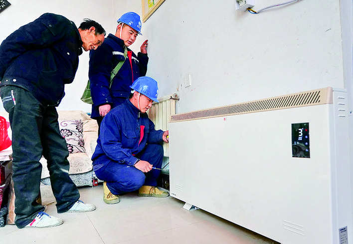 国网新河县供电公司工人在新河县西流乡南马庄村的农户家中调试电采暖设备。新华社记者 杨世尧 摄