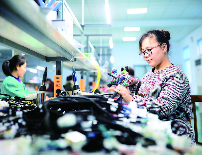 近日,位于内丘工业园区的河北紫瑞重型车辆有限公司员工在加工生产汽车线束产品。