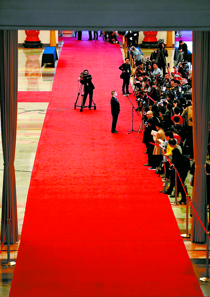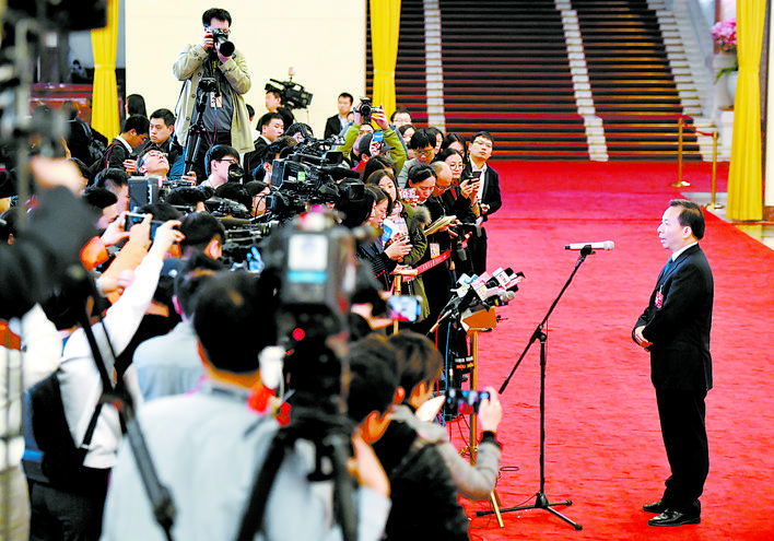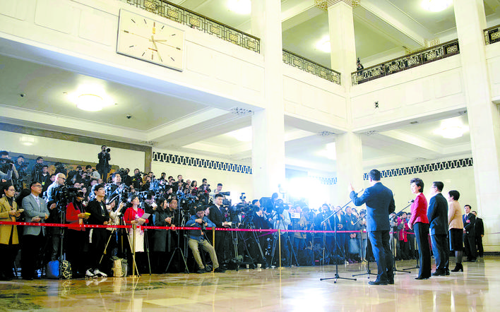 3月3日,中国人民政治协商会议第十三届全国委员会第二次会议在北京人民大会堂开幕。这是记者在“部长通道”采访。 新华社发