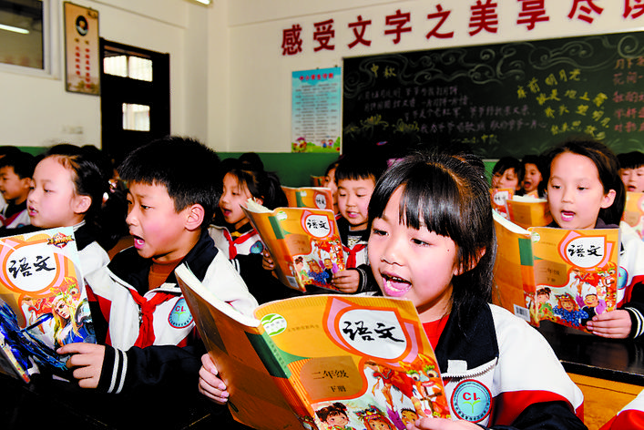 新学期开始了,青县清州镇城里小学的学生们捧着新书,朝气蓬勃地朗读课文。 王占林 摄