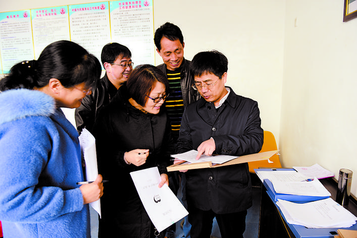 近日,深州市开展“百名干部做表率、千名干部下基层”活动暨扶贫脱贫工作专项督查,该市4套班子领导带队,深入魏家桥镇,进村入户,督查走访,开展农业农村工作大体检。图为在魏家桥镇冯康庄村查阅扶贫脱贫档案资料。高占峰 摄