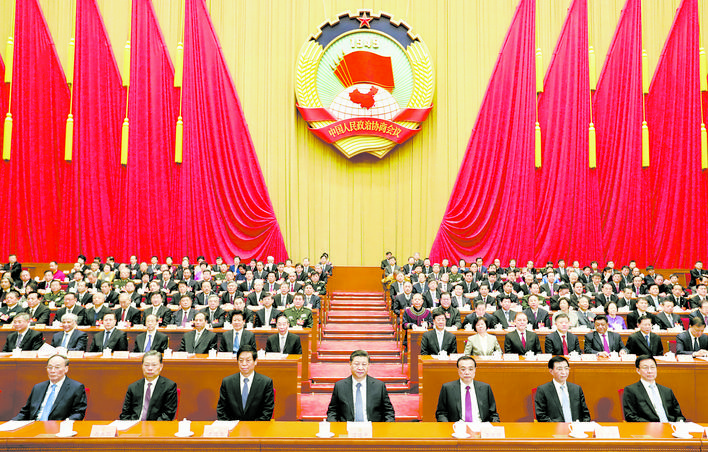 3月13日,中国人民政治协商会议第十三届全国委员会第二次会议在北京闭幕。这是习近平、李克强、栗战书、王沪宁、赵乐际、韩正、王岐山等在主席台就座。新华社记者 黄敬文 摄
