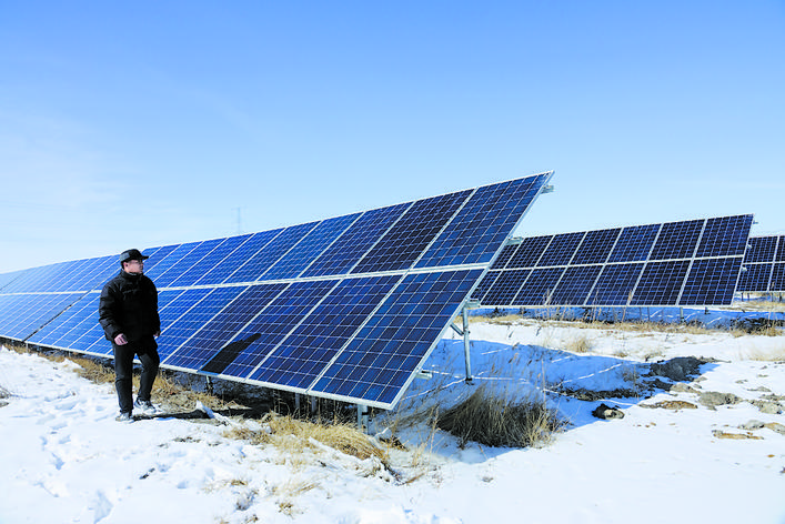 代家村发展的光伏产业。图为工作人员正在进行日常检查。王林红 摄
