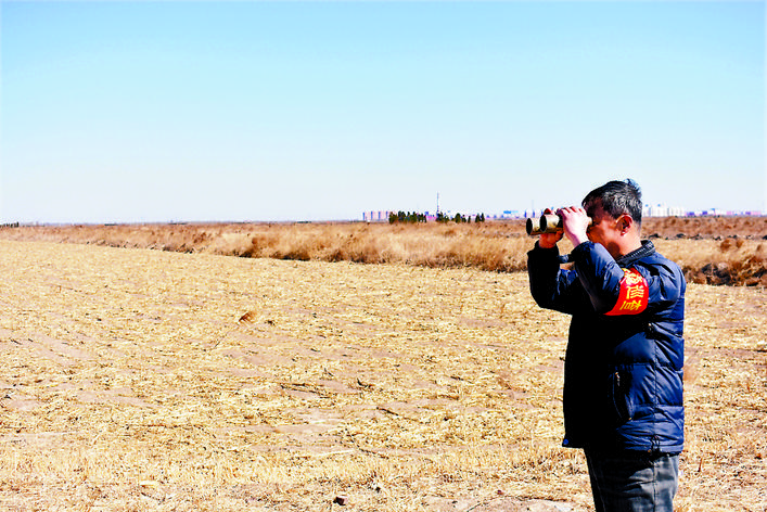 为改善农村消防安全环境,发展多种形式的消防队伍,南大港辖区30个行政村在南大港消防大队的支持下,纷纷成立了“防火巡逻队”。图为巡逻队员进行火情观察演练。 董飞 摄