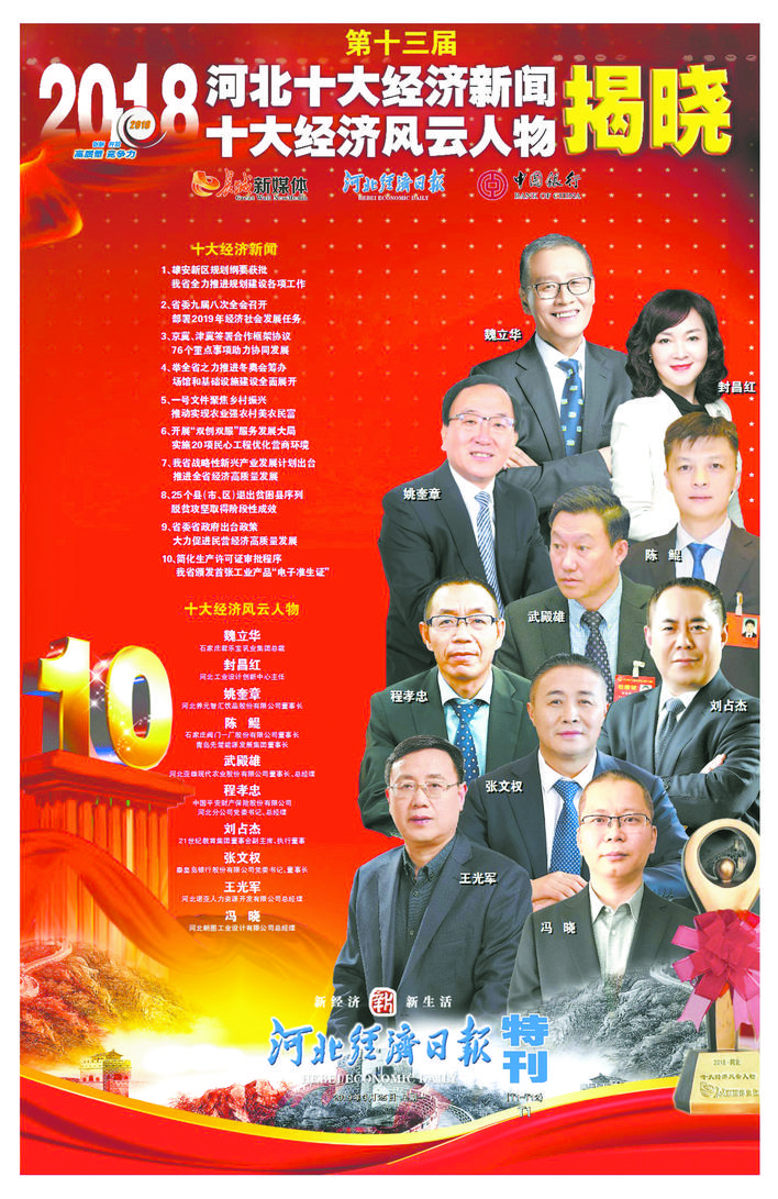 近日,由长城新媒体集团主办、河北经济日报社承办,中国银行河北省分行全程支持的“2018(第十三届)河北十大经济新闻暨年度十大经济风云人物”评选正式揭晓。 ▲▲详见T1-T12版