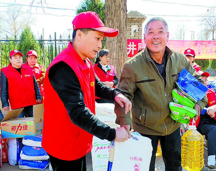 近日,省残疾人创业基金会携手多家爱心组织赴井陉县天长镇为38户残疾人、孤寡老人及困难家庭送去了米、面、油、菜等物品。爱心志愿者们走访了梁家村、长生口村等十几个村子。穆泓郡供图
