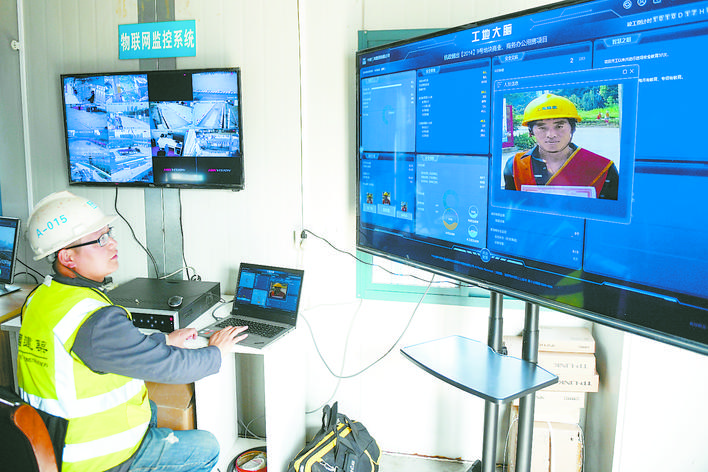 3月26日,工作人员在“浙江智慧之门”项目工地察看“工地大脑”的实时数据。近日,一套“智慧工地”管理系统在中建三局承建的“浙江智慧之门”项目施工现场投入应用,包括工人实名制通道、物联网数控中心、“工地大脑”等智慧化施工管理技术。新华社记者 黄宗治 摄