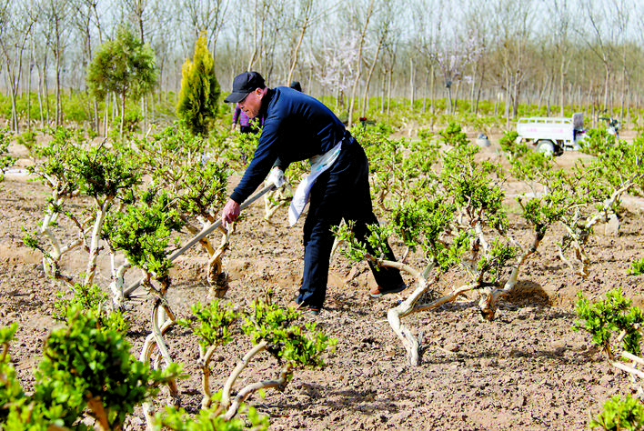 春耕时节,广宗县农民紧抓农时投入春耕生产,田野里处处是忙碌的景象。图为广宗县东召乡邓家屯村村民在金银花地里劳作。 王垒 孟仲儒 摄