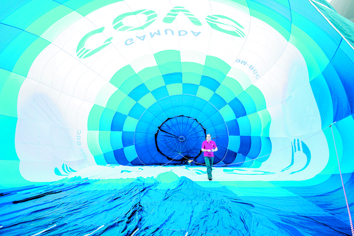 3月28日,在马来西亚普特拉贾亚,一名热气球手检查热气球。为期四天的马来西亚普特拉贾亚国际热气球节当日开幕。新华社发