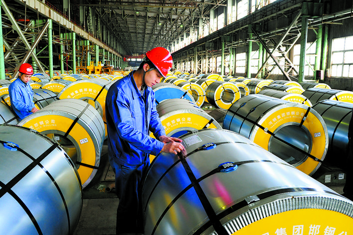 河钢邯钢主导产品汽车钢已通过9家企业认证,汽车O5板合格率同比提高10个百分点,上汽、长城等重点客户供货量大幅跃升,成为国内第二家具备第三代汽车用钢QP980生产能力的企业。 图为河钢邯钢职工正在检验将要出厂的高端汽车板。 昊天 摄