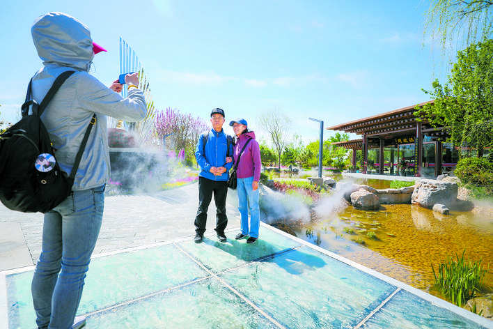 游客在游览北京世园会河北园。