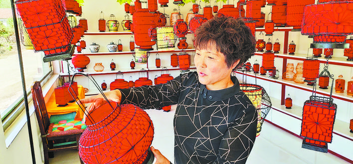 张桂贞正在检查即将交付客户的灯笼产品。商棠 摄