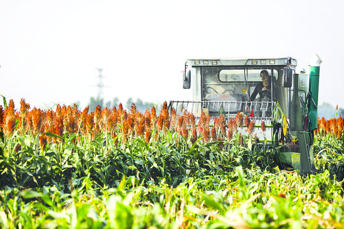 阜城县崔家庙镇红高粱种植区收割酿酒高粱。陈康 赵栋 摄
