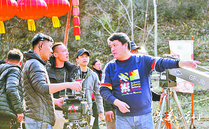 郭靖宇(右一)在《最美的乡村》拍摄现场。