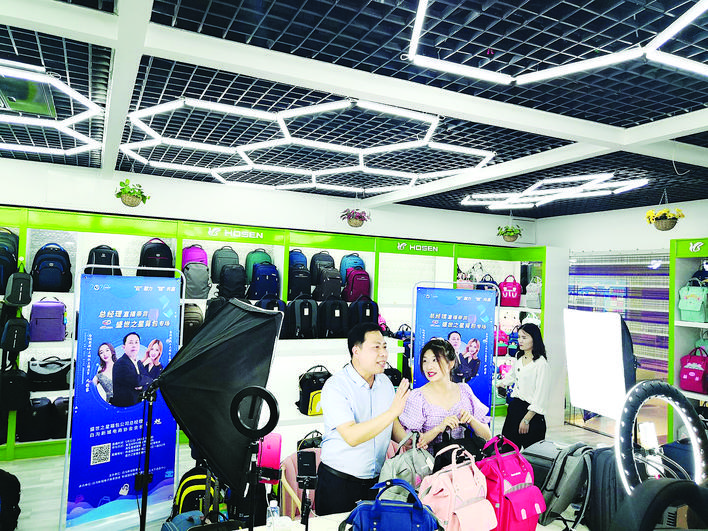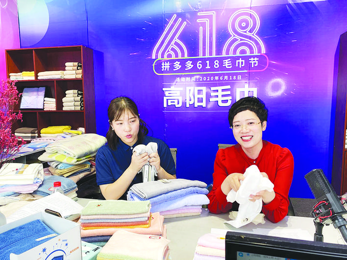 高阳县三利毛巾销售人员正在直播。