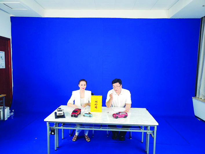 白沟电商协会会长(左)在直播现场。