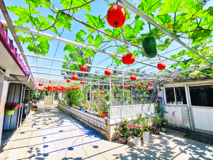 三屯营镇南团汀村美丽庭院一角。