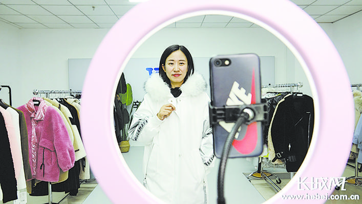辛集直播基地主播“晴晴”正在为粉丝介绍自家商品。 张建勋 摄